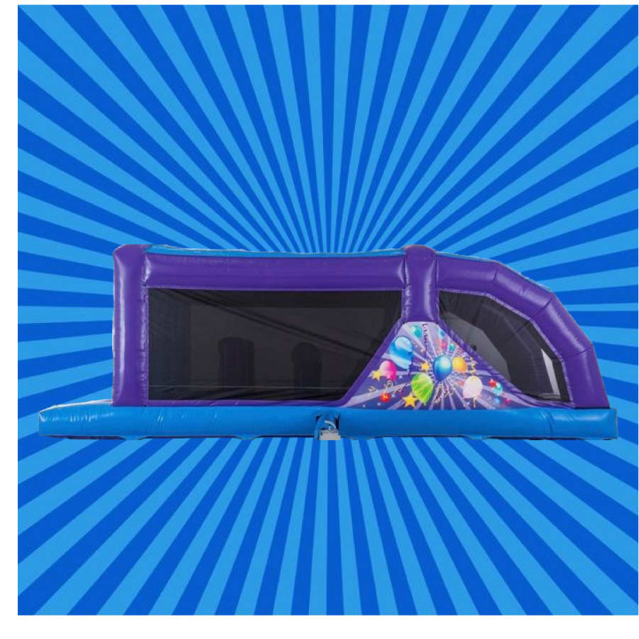 Our new 27 ft party time obstacle course will give hours of fun racing friends. its a great attraction giving more than just a bouncy area with its 3 obstacles inside with both Biff Bashes and a T-Bar. The slide is a great height too for added fun. This Obstacle course has a shower proof cover which also acts as a sun shade. perfect for garden party's to halls with it's low height. team this up with our matching inflatable slide and obstacle course for the ultimate party.