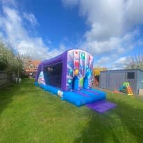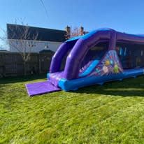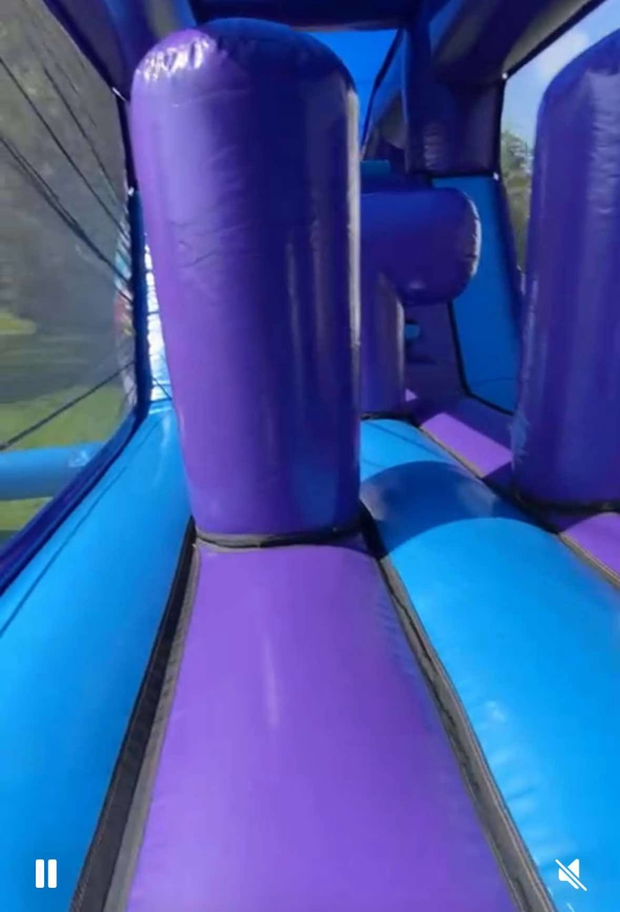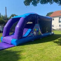 Our new 27 ft party time obstacle course will give hours of fun racing friends. its a great attraction giving more than just a bouncy area with its 3 obstacles inside with both Biff Bashes and a T-Bar. The slide is a great height too for added fun. This Obstacle course has a shower proof cover which also acts as a sun shade. perfect for garden party's to halls with it's low height. team this up with our matching inflatable slide and obstacle course for the ultimate party.