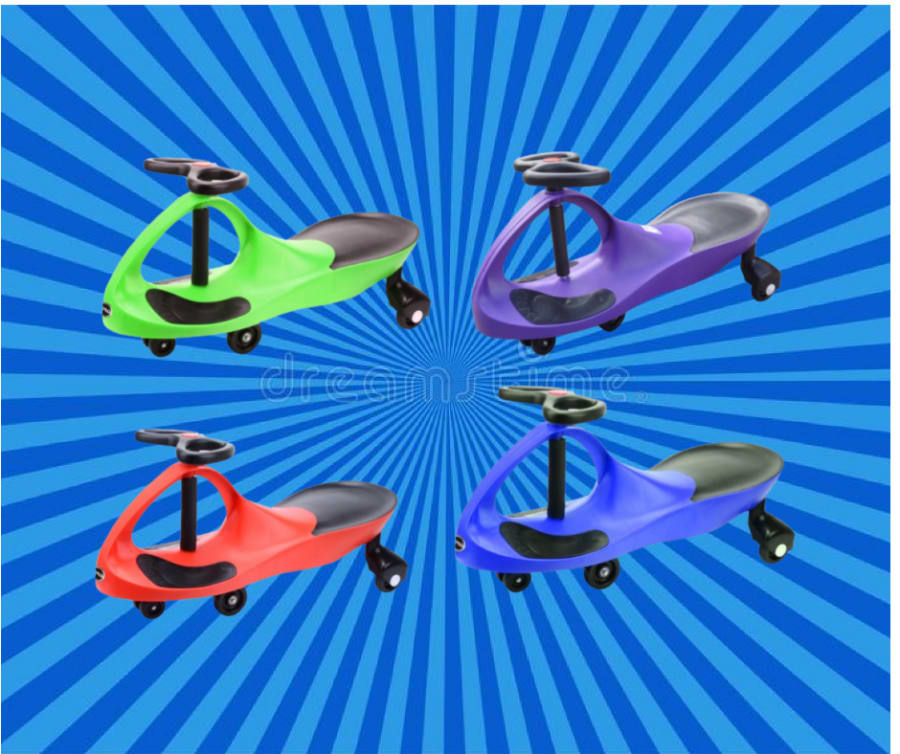 The self powered wiggle car requires no batteries or pedals just gravity and centrifugal force to move forward when the rider twists back and fourth, simply move the butterfly steering wheel left and right to propel the car using natural momentum